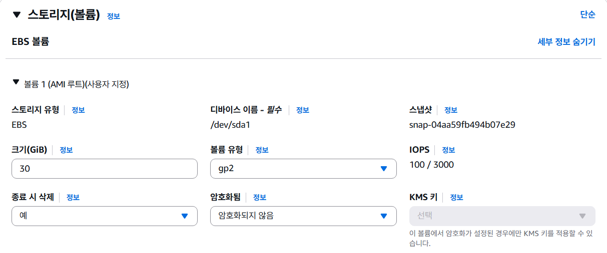 최대한 프리티어 안에서 해결하고 싶어서 gp2 30gb 조합으로 선택했다.