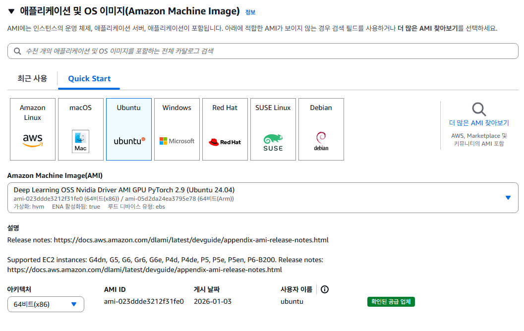 GPU AMI를 골라준다.