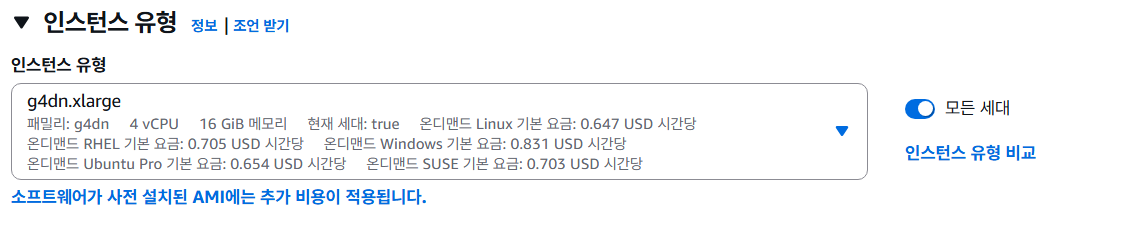 인스턴스 유형은 가장 저렴한 걸로..